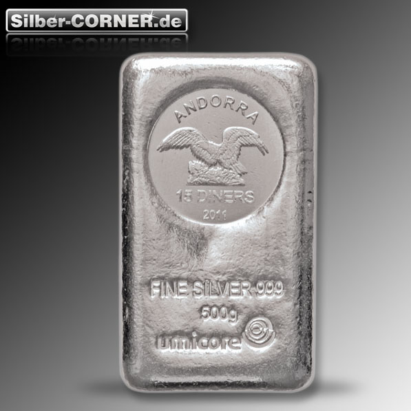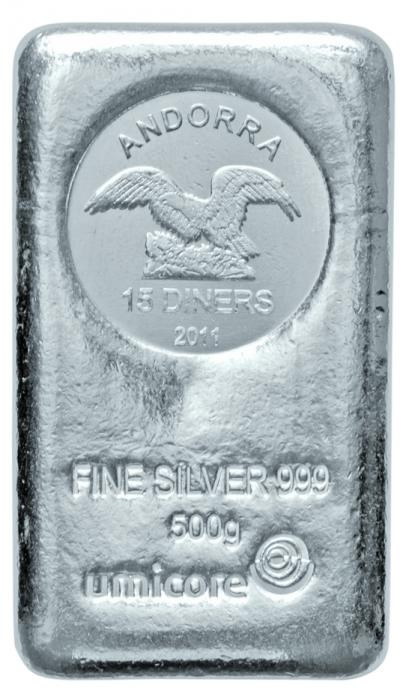 Umicore 500 Gramm Silber Münzbarren Andorra 15 Diners*