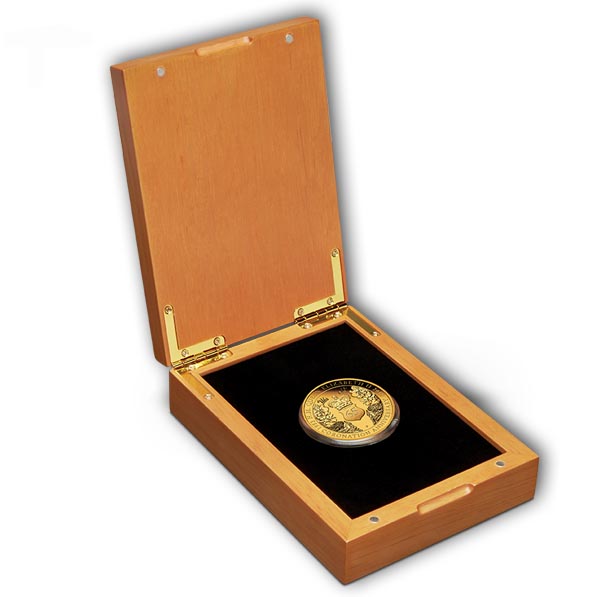 Die Münze wird gekapselt in der original Holzsammlerbox der Perth Mint inklusive Umverpackung und nummerierten Echtheitszertifkat ausgeliefert.