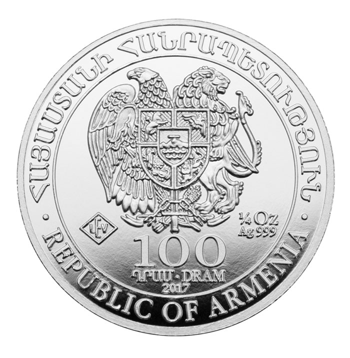 Das Motiv der Arche Noah Serie bleibt über die Jahrgänge hinweg beständig und zeigt eine detailreiche Darstellung der Arche vor dem Hintergrund des Berges Ararat, auf dem die Arche nach der Sintflut strandete. Im Vordergrund schwebt die Taube mit dem Olivenzweig, das universelle Symbol für Frieden und Neuanfang. Die Rückseite der Münze trägt das Staatswappen Armeniens sowie die Angaben zum Feingewicht von 1/4 Unze, der Reinheit und dem Nennwert in armenischen Dram. Da wir verschiedene Jahrgänge der Arche Noah 1/4 Unze führen, eignet sich diese Münze perfekt für Investoren, die ein hohes Maß an Fungibilität und Wiedererkennungswert in ihrem Portfolio schätzen.