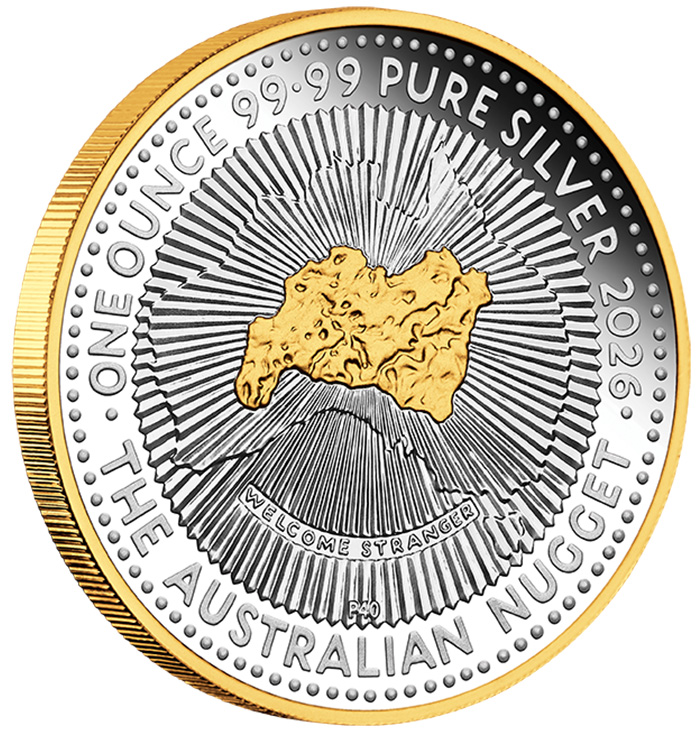 Australien Nugget 1 Unze Silber vergoldet Polierte Platte 2026 mit Box und Zertifikat