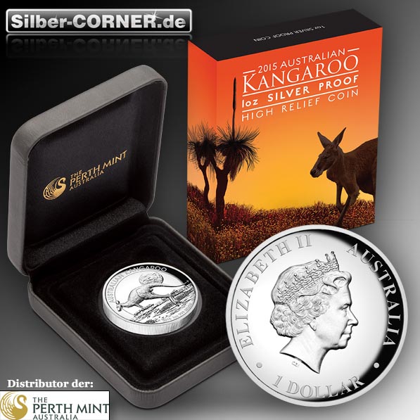 Känguru 2015 in der wohl spektakulärsten Prägetechnik "High Relief", die Münze wurde zudem in der Prägequalität "Polierte Platte" geprägt.