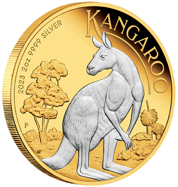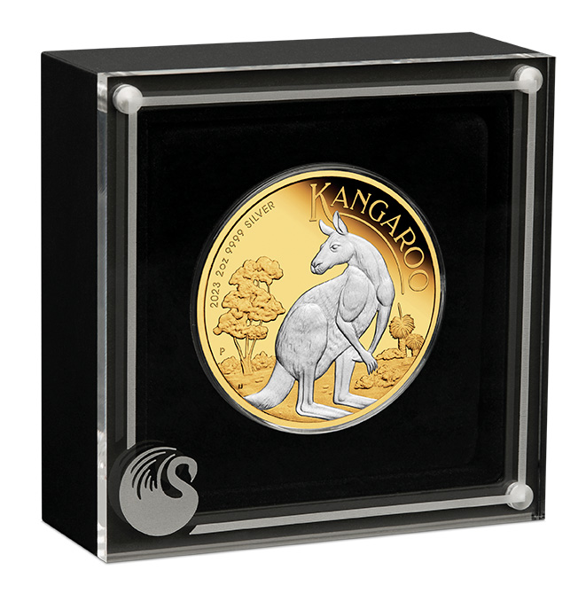 Australien Känguru - Reverse Gilded - 2 Unzen Silber 2023 + Box + Zertifikat