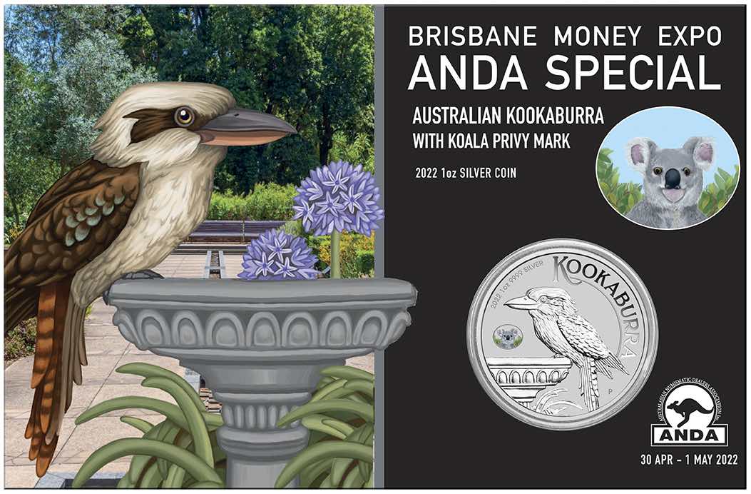 Brisbane Money Expo - 1 Oz Silber Kookaburra - Privy Mark Koala - 2022 im Blister