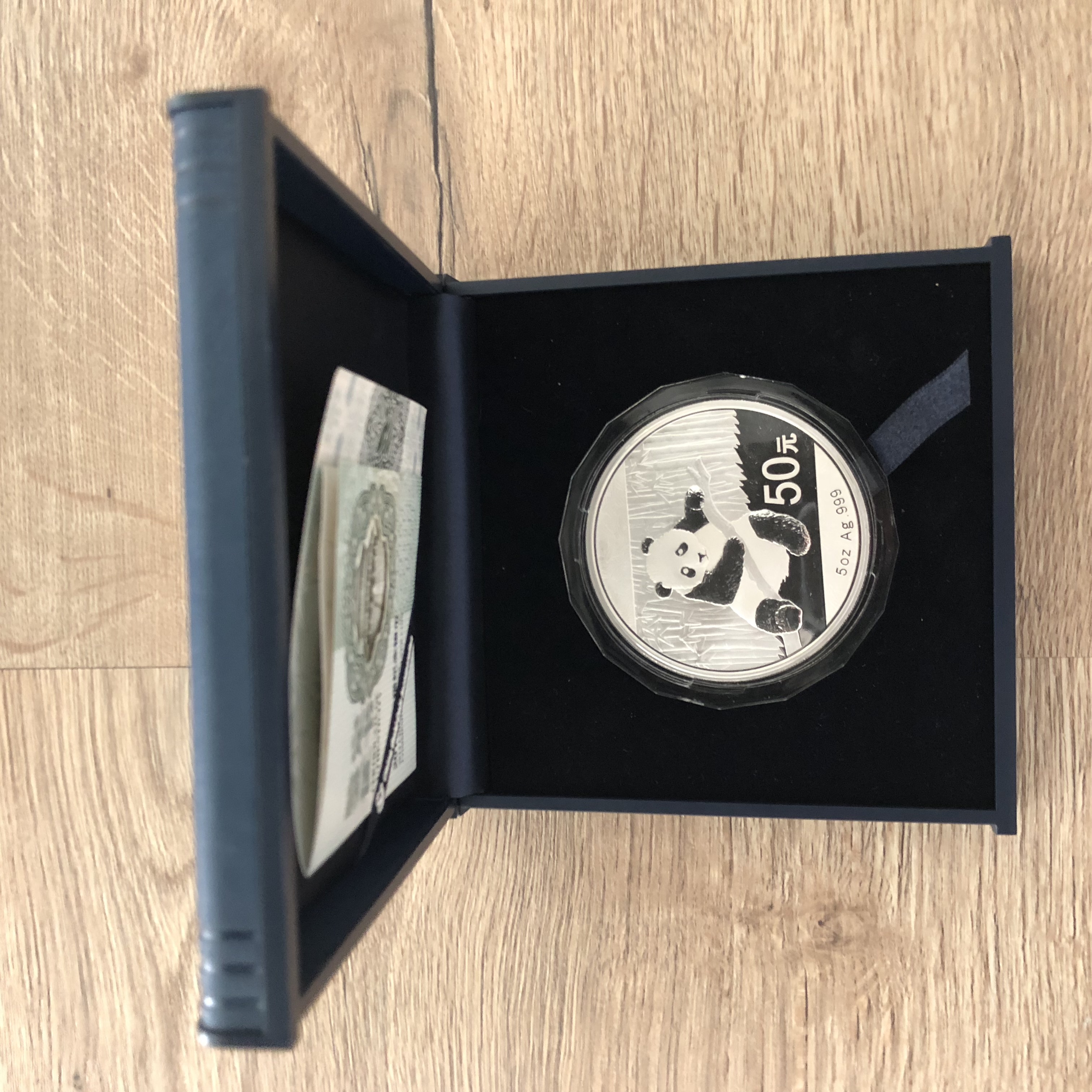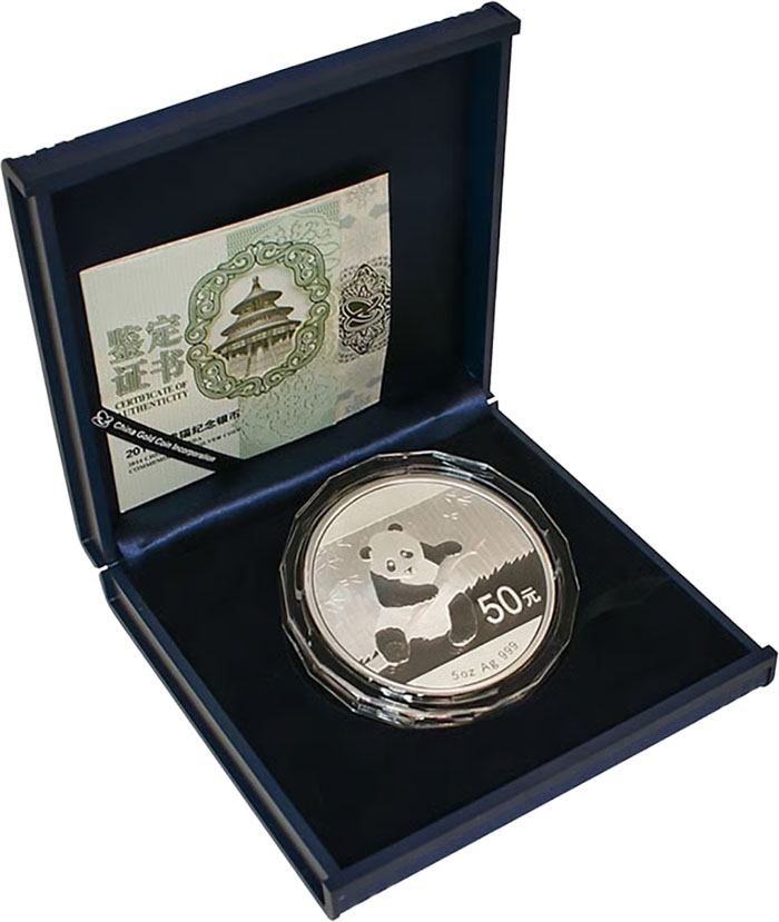 China Panda 5 Unzen Silbermünze Polierte Platte 2014 + Box + Zertifikat