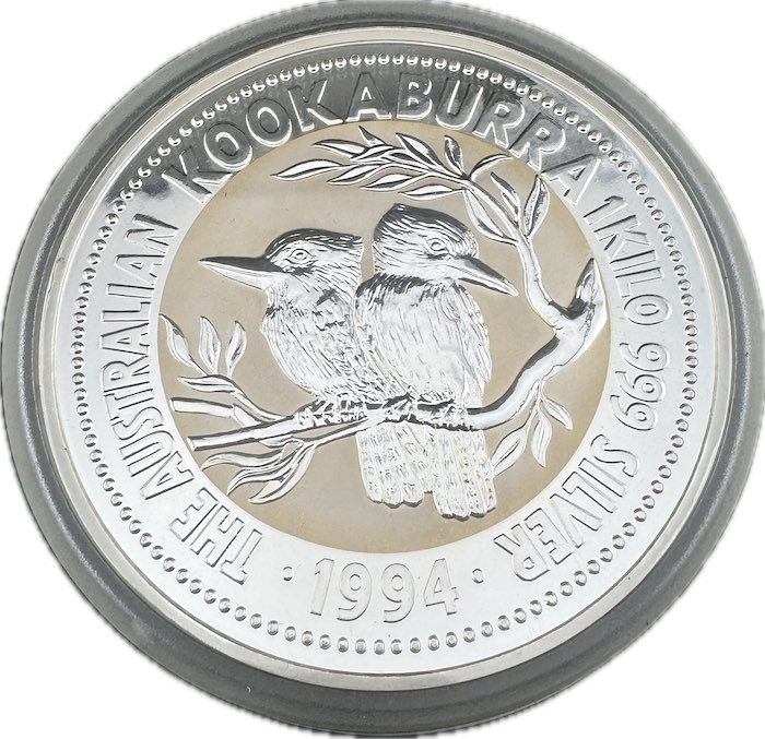 Die Silbermünze Kookaburra 1 KG 1994 wird in der original Münzkapsel verkauft.