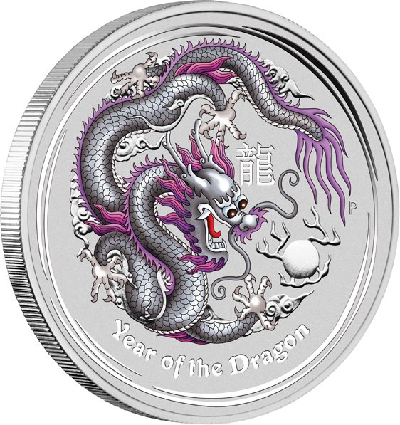 Lunar II - Jahr des Drachen - 1 Unze Silbermünze - silver coloriert - 2012