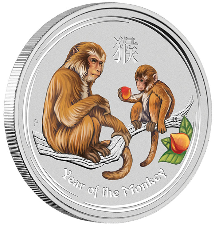 Lunar II Jahr des Affen 2016 endlich in der 2 Oz Silber Version coloriert verfügbar.