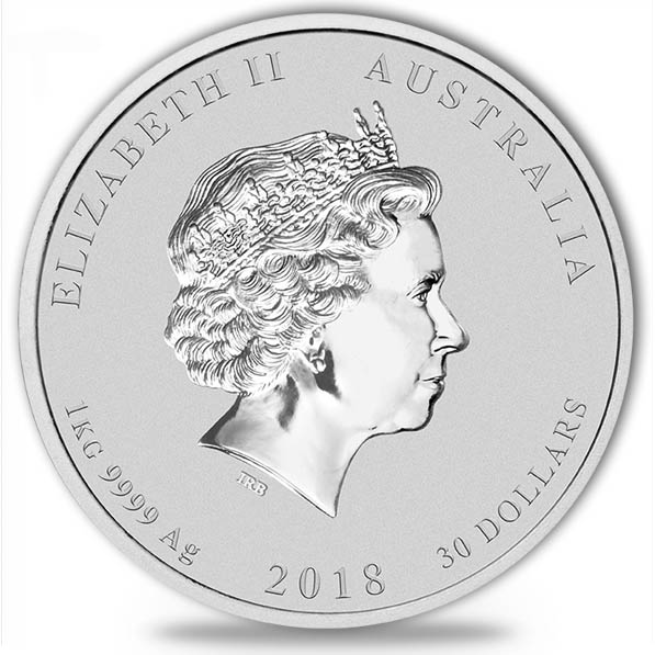 Lunar II Jahr des Hund 1 KG Silbermünze coloriert. Die Abbildung des Hundes ist von der Perth Mint hochwertig coloriert.