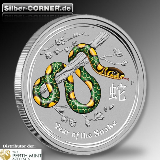 Lunar Serie II - Jahr der Schlange - 1 Unze Silbermünze farbig / coloriert 2013