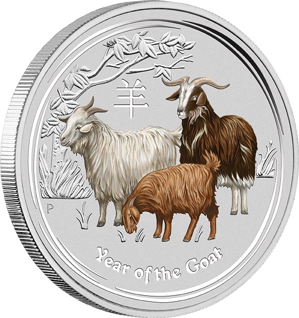 Lunar II - Jahr der Ziege - 1 Unze Silbermünze farbig 2015