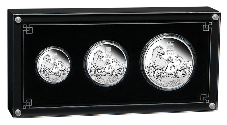 Lunar Serie 3 - Jahr des Pferdes- 3-Coin Set Silber Proof 2026 + Box + Zertifikat