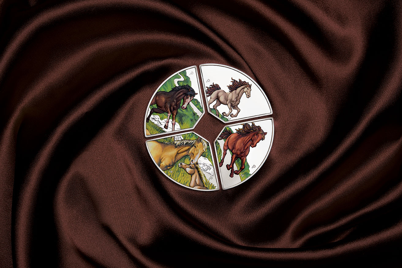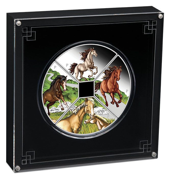 Jahr des Pferdes - Quadrant - 4 x 1 Unze Silber Proof 2026 + Box +Zertifikat