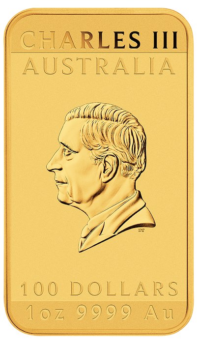 Auf der Vorderseite ist das Porträt von König Charles III abgebildet, gestaltet von Dan Thorne. Umgeben von feinen Linien sowie der Inschrift „CHARLES III AUSTRALIA“, sind hier auch Gewicht, Feingehalt und der Nennwert der Münze vermerkt.