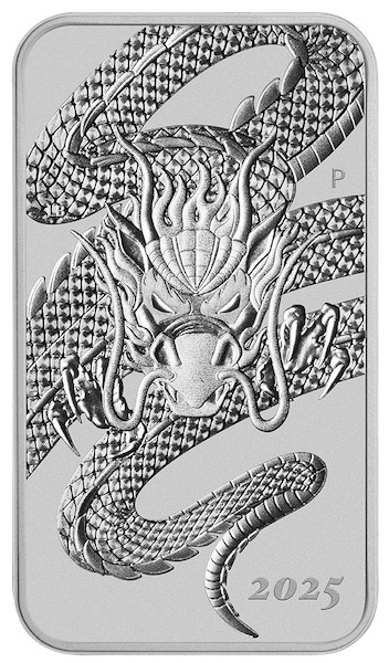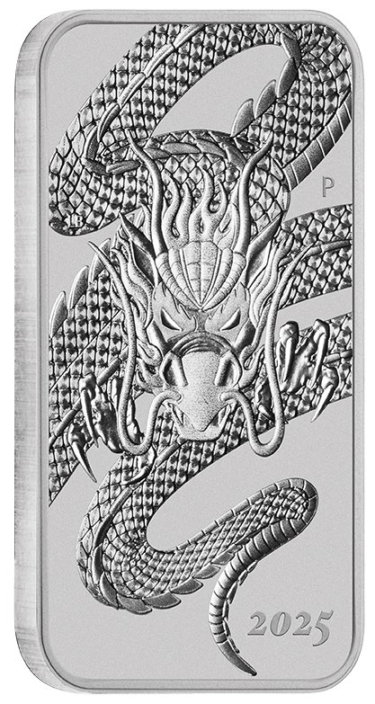 Austraien Rectangular Drache 1 Unze Silbermünze 2025