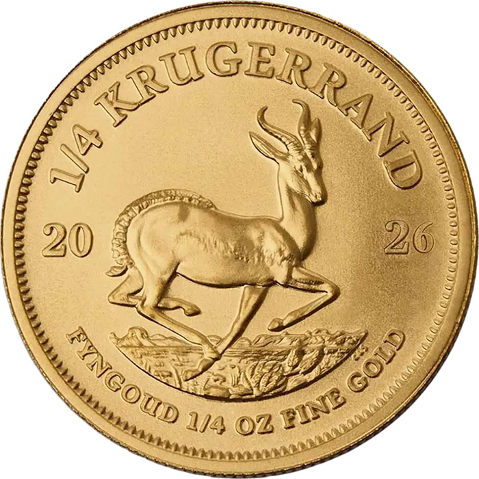 Sie kaufen hier prägefrische 1/4 Unzen Goldmünze Krügerrand 2026.