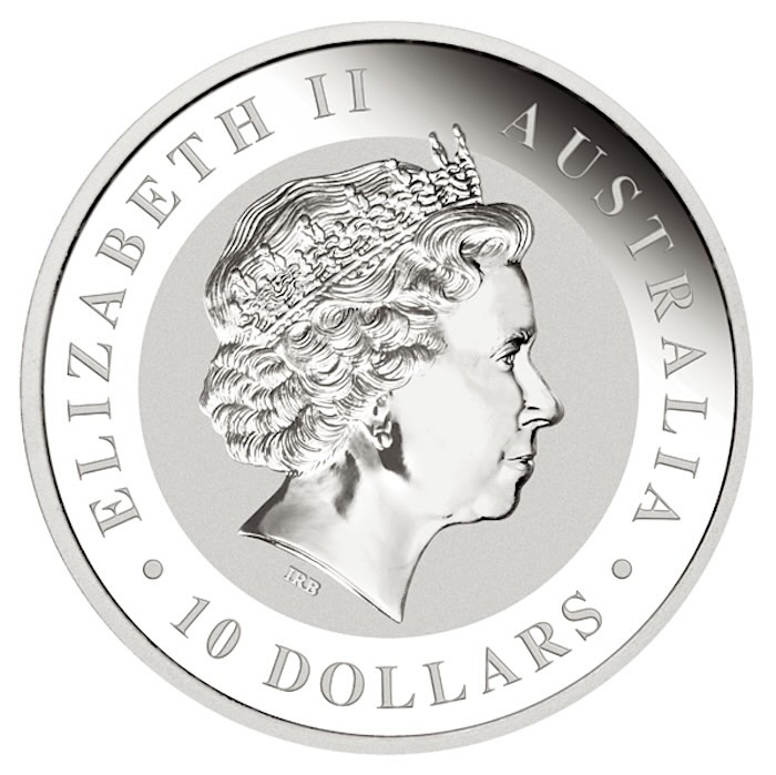 Wenn Sie den Lunar I Drachen 10 oz kaufen, entscheiden Sie sich für ein Design von zeitloser Eleganz und mythologischer Tiefe. Das Revers (Rückseite) präsentiert den traditionellen chinesischen Drachen, der sich windend über die gesamte Fläche der Münze erstreckt und in seinen Klauen die „Perle der Weisheit“ hält. Die großzügige Fläche der 10-Unzen-Stückelung erlaubt eine so feine Ausarbeitung der Schuppenpanzerung und der flammenden Details, wie sie bei kleineren Münzen kaum möglich ist. Ergänzt wird das ikonische Motiv durch das chinesische Schriftzeichen für „Drache“ und das Prägejahr 2000. Auf der Vorderseite befindet sich das klassische Porträt von Queen Elizabeth II, das Feingewicht von 10 oz sowie der offizielle Nennwert von 10 australischen Dollar.