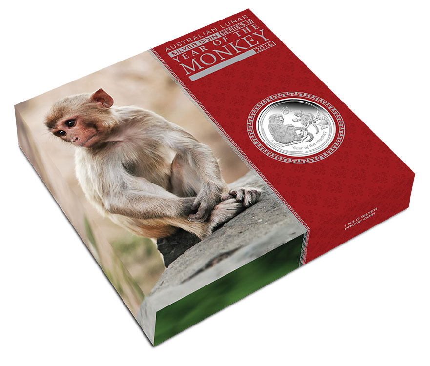 Lunar Serie II - Jahr des Affen - 1 Kilogramm Silber Polierte Platte 2016 + Box + Zertifikat