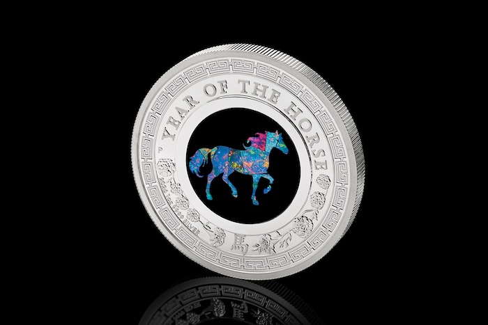 Sehr begeehrte Ausgabe der Lunar Serie der Perth Mint. Die Münze hat ein echtes Opal-Inlay welches ein Pferd zeigt, die Prägequalität ist Polierte Platte.