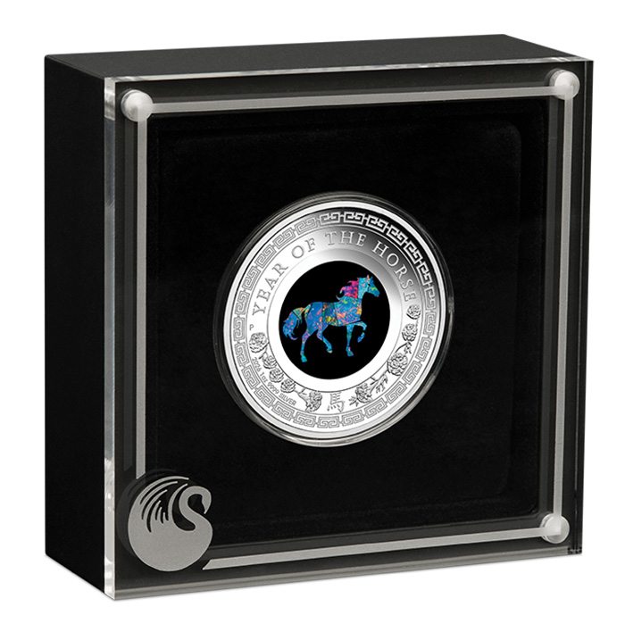 Lunar - Jahr des Pferdes - 1 Unze Silber Opal-Inlay Proof 2026 + Box + Zertifikat