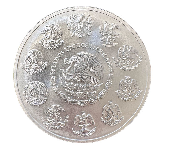 Das Motiv der Mexiko Libertad ist eine Hommage an die Unabhängigkeit Mexikos. Im Zentrum steht die Siegesgöttin Victoria, die majestätisch auf der Unabhängigkeitssäule in Mexiko-Stadt thront. Im Hintergrund sind die legendären Vulkane Popocatépetl und Iztaccíhuatl zu sehen. Auf der 5 Unzen Stückelung kommen diese feinen Details besonders plastisch und eindrucksvoll zur Geltung. Die Rückseite zeigt das nationale Wappen Mexikos, umgeben von verschiedenen historischen Adler-Wappen des Landes. Die Kombination aus historischer Symbolik und massiver Edelmetall-Qualität macht die 5 oz Libertad zu einem begehrten Objekt für Sammler und Investoren gleichermaßen. Wir bei Silber-CORNER.de garantieren Ihnen eine diskrete Abwicklung und den Erhalt von Münzen in erstklassigem Zustand zu sehr günstigen Preisen.