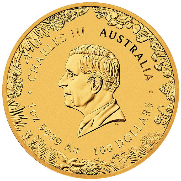 Diese Goldmünze wird mit einer Feinheit von 99,99 Prozent Gold geprägt und hat ein Feingoldgewicht von 31,107 Gramm bei einem identischen Bruttogewicht von 31,107 Gramm. Mit einem Durchmesser von 32,60 Millimetern und einer Dicke von 2,95 Millimetern ist sie ein massives Zeugnis prägetechnischer Perfektion. Die Vorderseite zeigt das Porträt Seiner Majestät König Charles III., entworfen von Dan Thorne, welches von einer dekorativen Umrandung aus einheimischen Pflanzen und Korallen umgeben ist. Hier finden sich zudem die Angaben zum Nennwert von 100 Australischen Dollar sowie zur Feinheit und dem Gewicht. Ein besonderes Sicherheitsmerkmal in Form eines mikro-eingravierten Buchstabens schützt die Münze zusätzlich vor Fälschungen. Die weltweite Auflage ist streng auf 10.000 Exemplare begrenzt.